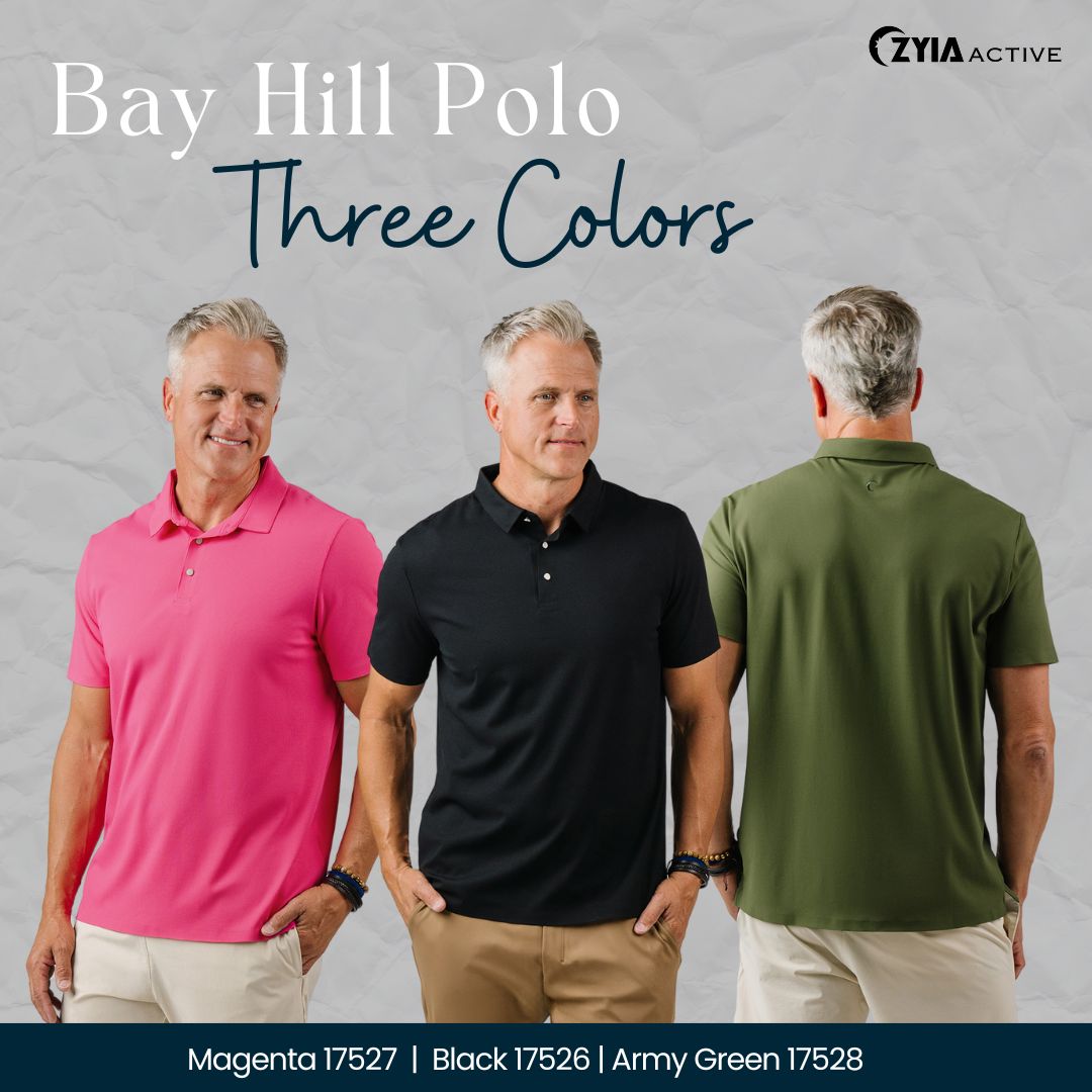 17526-17527-17528 - Men’s Black, Magenta, and Army Green Bay Hill Polo