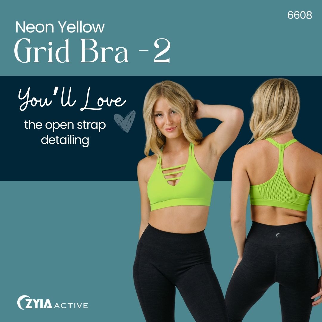 6608 - Neon Yellow Grid Bra - 2
